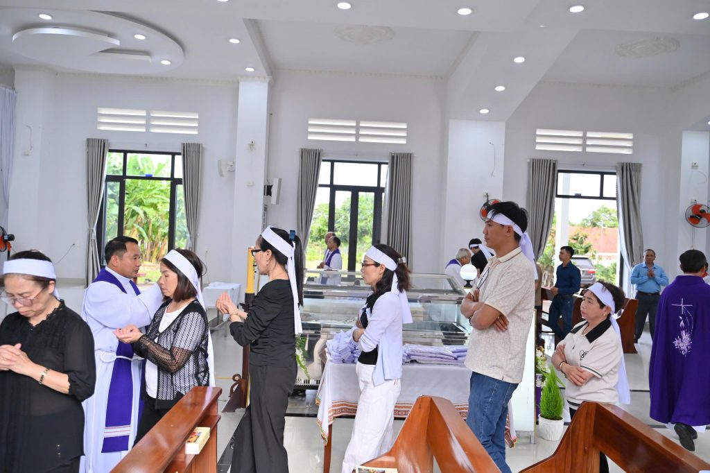 Trong bầu khí trang nghiêm và xúc động, Đức Cha Aloisiô đã chủ sự nghi thức tẫn liệm, làm phép tang và quan tài, mở đầu cho những giây phút tiễn biệt đầy niềm tin và thương nhớ.