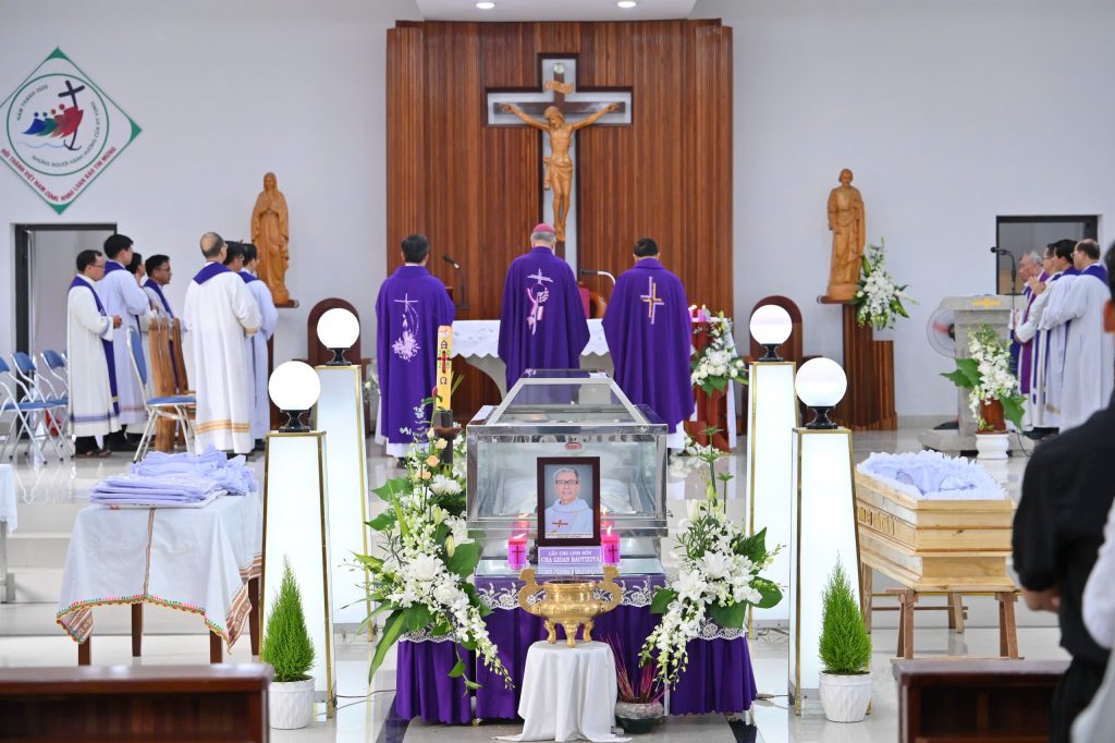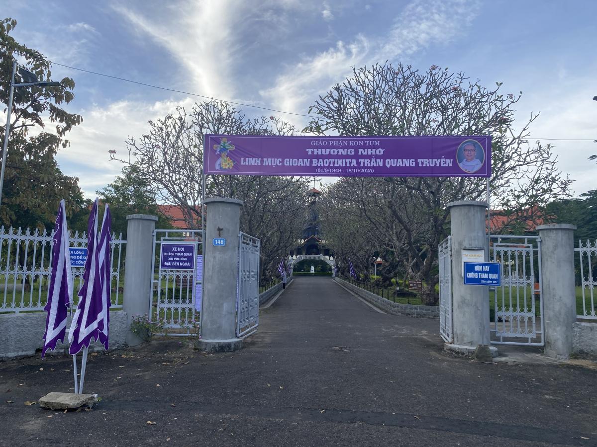 Chiều thứ Bảy, ngày 18 tháng 10 năm 2025, vào lúc 15g00, tại Trung tâm Mục vụ – Tòa Giám mục Kon Tum, các thành phần trong gia đình Giáo phận đã quây quần bên linh cữu Cha cố Gioan Baotixita Trần Quang Truyền để cử hành nghi thức lễ tang và dâng Thánh lễ cầu nguyện cho ngài.