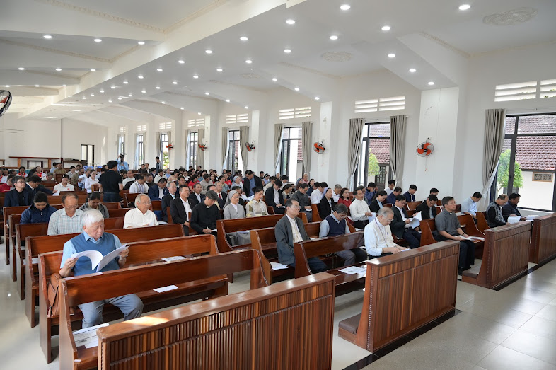 Mở đầu cuộc họp, Đức Cha Aloisiô đã chủ sự nghi thức thánh hóa và tuyên bố khai mạc. Tiếp đến, Cha Stêphanô Nguyễn Hoàng Minh, Thư ký Nội vụ HĐMVGP, đã giới thiệu danh sách toàn thể thành viên Hội Đồng, bao gồm các linh mục trong Ban Thường vụ, cùng quý linh mục, tu sĩ và giáo dân đại diện cho 17 Ủy ban Mục vụ và Hội đoàn trong Giáo phận.