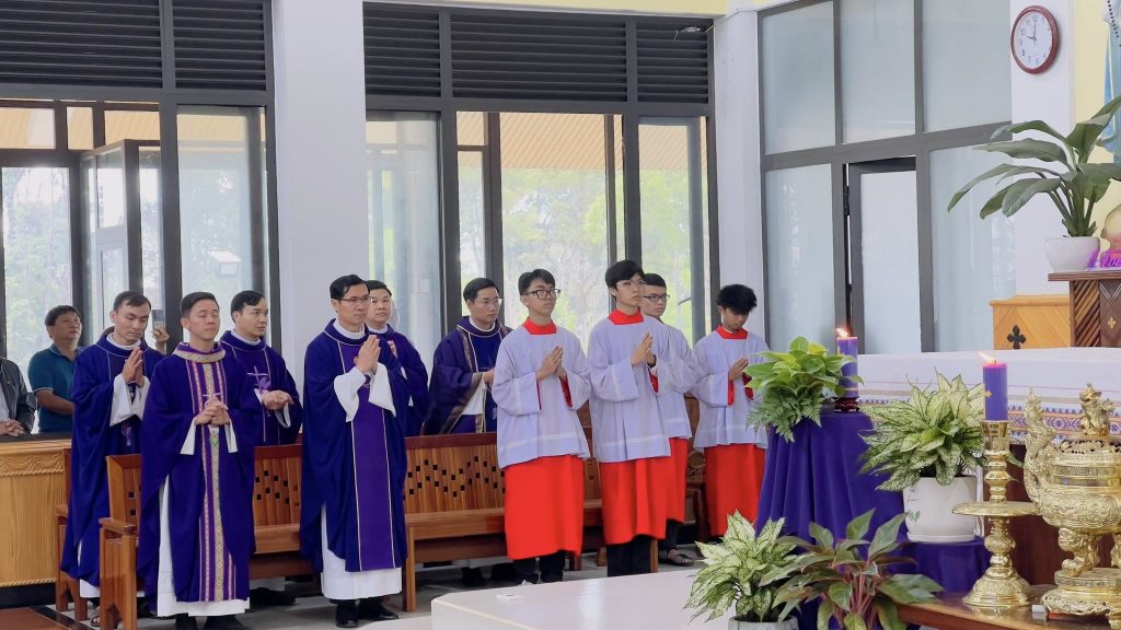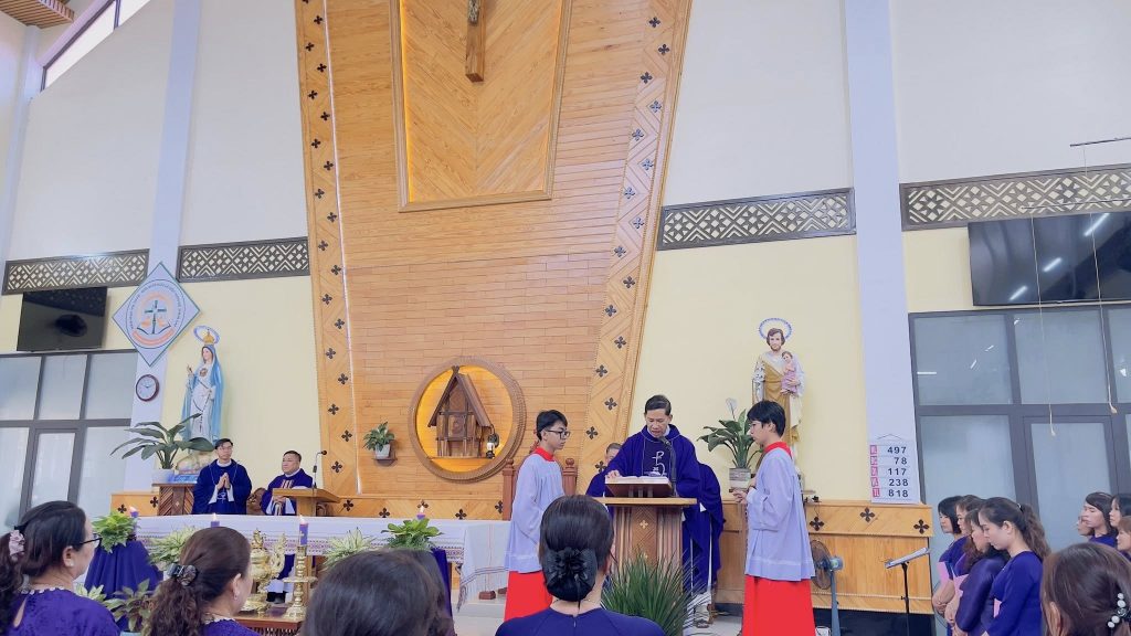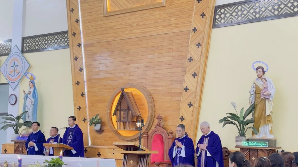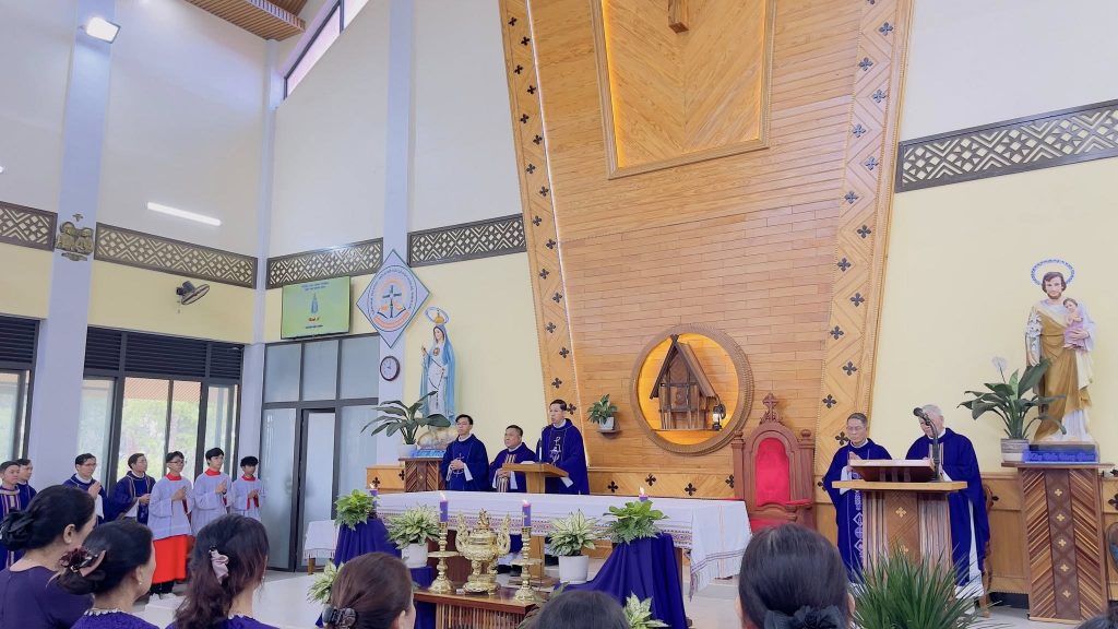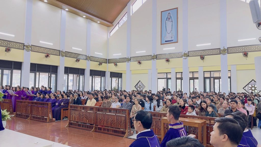 Sáng ngày 07/03/2026, tại TTHH Đức Mẹ Măng Đen đã diễn ra Thánh lễ đầu tháng như thường lệ vào lúc 10g00. Thánh lễ hôm nay do Giáo hạt An Khê phụ trách phụng vụ, với sự chủ tế của cha Gioan Baotixita Nguyễn Minh Hoàng, chính xứ Giáo xứ An Sơn kiêm Quản hạt Giáo hạt An Khê. Cùng đồng tế với ngài có cha Quản nhiệm, cha Phụ tá TTHH Đức Mẹ Măng Đen, cùng một số quý Cha trong Giáo Hạt. Hiệp thông trong thánh lễ ngoài quý Tu sĩ nam nữ, giáo dân Giáo hạt An Khê, còn có đông đảo bà con giáo dân và khách hành hương xa gần.